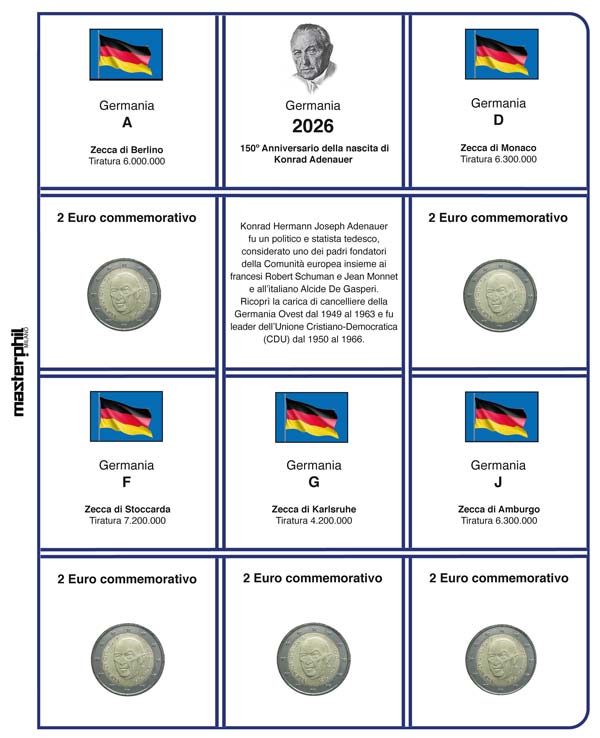 aggiornamento 2026 Germania 5 zecche - 150º anniversario della nascita di Konrad Adenauer quantità